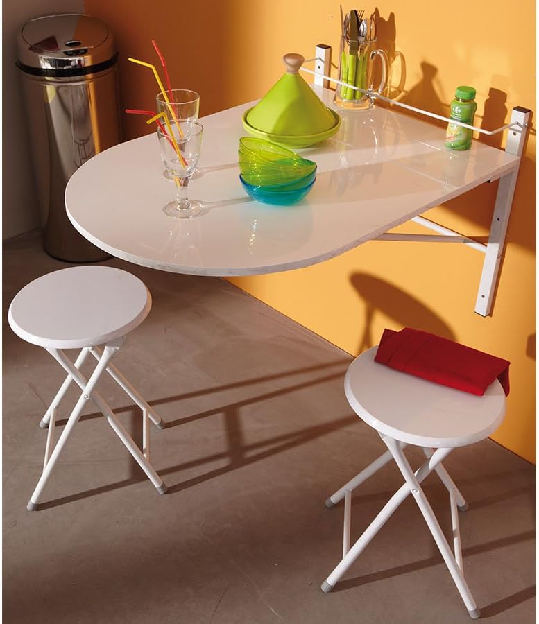 Mobelando Wandtisch Inkl Klapp Hocker Wand Klapptisch Klappstuhl Kuchentisch Weiss Flora Amazon De Kuche Haushalt Wohnen